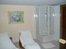 Eine Oase der Ruhe nach einem anstrengenden Tag auf der Arbeit. Der private Wellnessbereich, mit Sauna (circa 2 x 2m), Ruheraum und Dusche ist mit hochwertigen Fliesen aus Spanien verlegt, und verfügt über gedämmtes Gelblicht, was das Ambiente dieses besonderen Bereichs vervollständigt.
