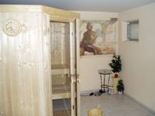 Eine Oase der Ruhe nach einem anstrengenden Tag auf der Arbeit. Der private Wellnessbereich, mit Sauna (circa 2 x 2m), Ruheraum und Dusche ist mit hochwertigen Fliesen aus Spanien verlegt, und verfügt über gedämmtes Gelblicht, was das Ambiente dieses besonderen Bereichs vervollständigt.